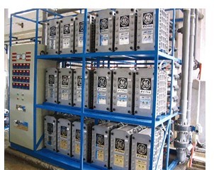 EDI模塊將離子交換樹脂充夾在陰/陽離子交換膜之間形成EDI單元。EDI模塊中將一定數(shù)量的EDI單元間用格板隔開,形成濃水室和淡水室。又在單元組兩端設(shè)置陰/陽電極。在直流電的推動下,通過淡水室水流中的陰陽離子分別穿過陰陽離子交換膜進(jìn)入到濃水室而在淡水室中去除。而通過濃水室的水將離子帶出系統(tǒng),成為濃水. EDI設(shè)備一般以二級反滲透(RO)純水作為EDI給水。RO純水電阻率一般是40-2μS/cm(25℃)。EDI純水電阻率可以高達(dá)18 MΩ.cm(25℃),但是根據(jù)去離子水用途和系統(tǒng)配置設(shè)置,EDI超純水適用于制備電阻率要求在1-18.2MΩ.cm(25℃)的純水。