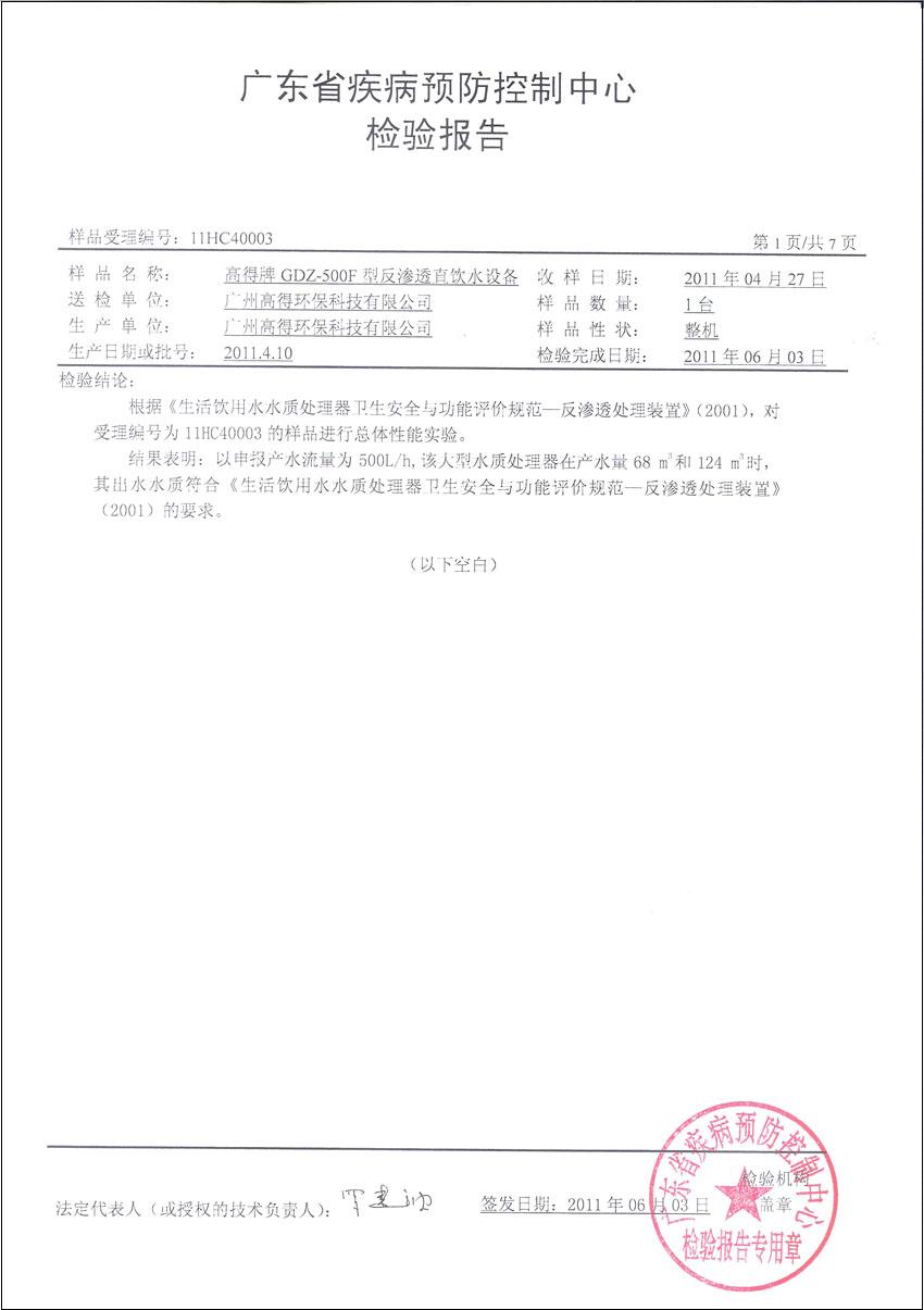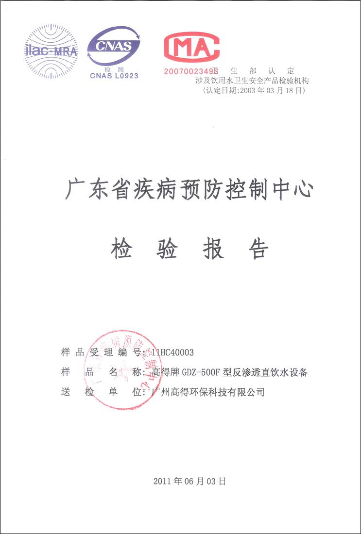 廣東省疾病預防控制中心檢驗報告